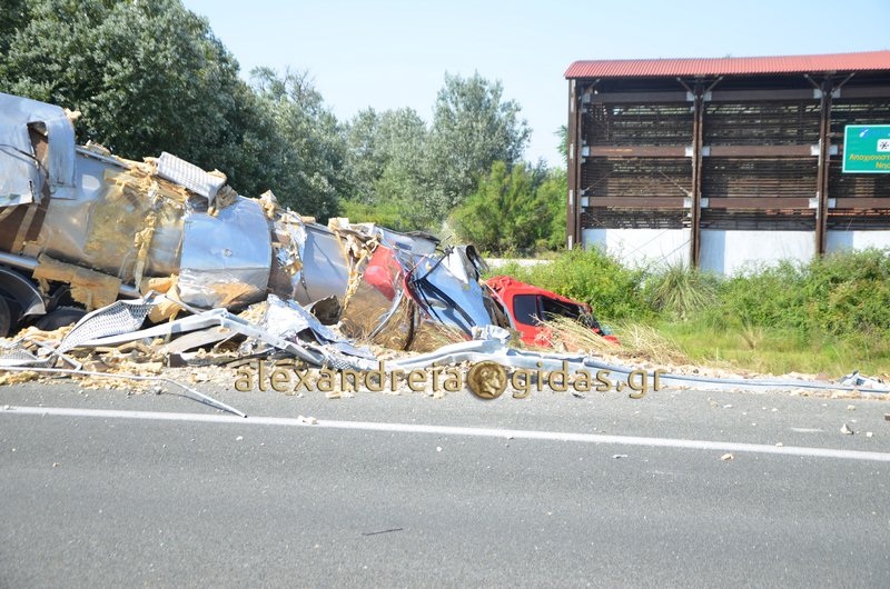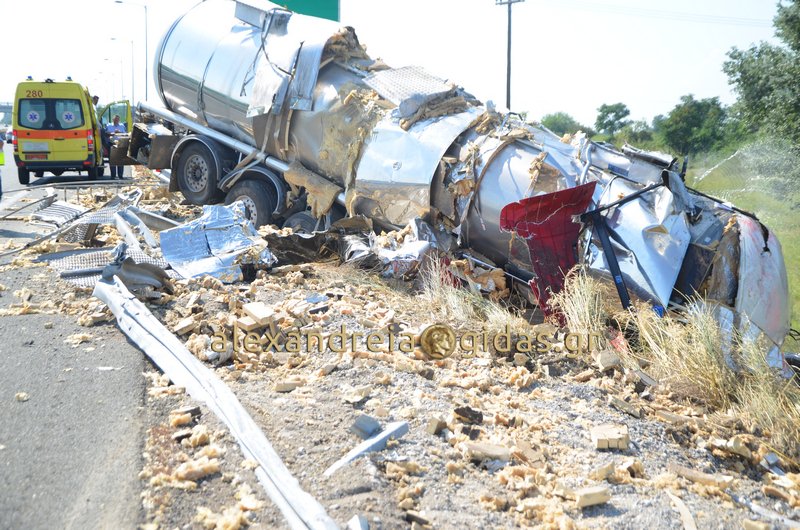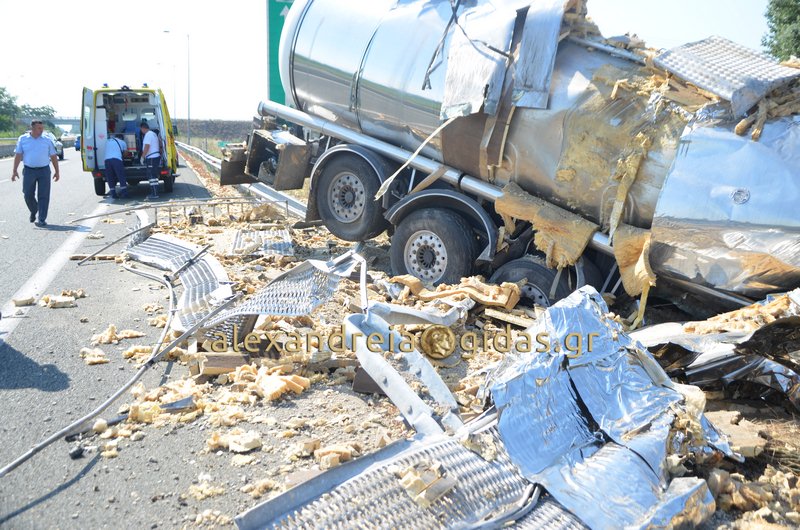 Τροχαίο δυστύχημα συνέβη το απόγευμα της Παρασκευής 6 Ιουλίου στην Εγνατία Οδό λίγο πριν την έξοδο της Αλεξάνδρειας με κατεύθυνση από την Θεσσαλονίκη προς Βέροια.