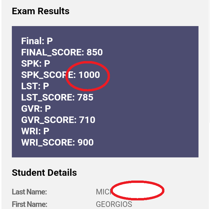 Αρκετοί μαθητές των Αγγλικών ΜΙΧΑΛΟΠΟΥΛΟΥ πέτυχαν βαθμολογία 100% σε αρκετά τμήματα των εξετάσεων MICHIGANκαι CAMBRIDGEόπως φαίνεται στις φωτογραφίες των αποτελεσμάτων των πρόσφατων εξετάσεων FCE – ECCE – ECPE – BCCE.