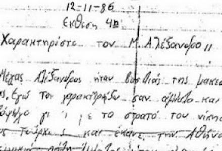 Η έκθεση είχε τον τίτλο “Χαρακτηρίστε τον Μ. Αλέξανδρο”. Ο φίλος μας ξεκίνησε να γράφει για τον βασιλιά της Μακεδονίας και κατέληξε όπου δεν μπορείτε να φανταστείτε!