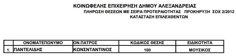 ΤΟΠΙΚΑ 18 Φεβρουαρίου, 2012 posted by admin Share ΠΡΟΣΛΗΦΘΗΚΕ ΜΟΥΣΙΚΟΣ ΣΤΟΝ ΔΗΜΟ ΑΛΕΞΑΝΔΡΕΙΑΣ Η Κοινωφελής Επιχείρηση του Δήμου Αλεξάνδρειας ανακοινώνει τα προσωρινά αποτελέσματα από την προκήρυξη ΣΟΧ 2/2012 για την πρόσληψη ενός Μουσικού ΠΕ. Δείτε τον πίνακα με τον επιτυχόντα: Αφήστε μια απάντηση Ακύρωση απάντησηςΗ ηλ. διεύθυνση σας δεν δημοσιεύεται. Τα υποχρεωτικά πεδία σημειώνονται με *Σχόλιο * Όνομα Email Ιστότοπος Αποθήκευσε το όνομά μου, email, και τον ιστότοπο μου σε αυτόν τον πλοηγό για την επόμενη φορά που θα σχολιάσω.
