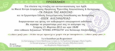 ΤΟΠΙΚΑ 17 Μαρτίου, 2012 posted by admin Share Η ΠΡΟΣΚΛΗΣΗ ΓΙΑ ΤΟΝ ΧΟΡΟ ΤΩΝ ΠΑΙΔΙΩΝ ΤΗΣ ΑΝΟΙΞΗΣ Αφήστε μια απάντηση Ακύρωση απάντησηςΗ ηλ. διεύθυνση σας δεν δημοσιεύεται. Τα υποχρεωτικά πεδία σημειώνονται με *Σχόλιο * Όνομα Email Ιστότοπος Αποθήκευσε το όνομά μου, email, και τον ιστότοπο μου σε αυτόν τον πλοηγό για την επόμενη φορά που θα σχολιάσω.
