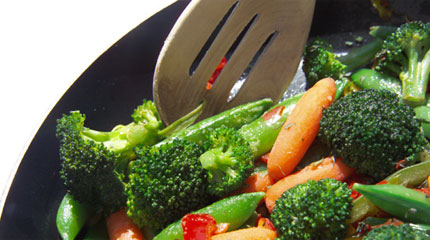 Εν τω μεταξύ όταν τα λαχανικά κοντεύουν να βράσουν, βράζετε τις πένες σε κατσαρόλα με το ζωμό για ζυμαρικά. Τις σουρώνετε, τις αναμιγνύετε με τα λαχανικά και τη σάλτσα τους και σερβίρετε αμέσως.