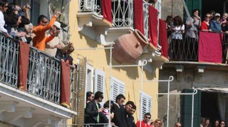 Στην Κέρκυρα, οι «μπότιδες» πέφτουν… βροχή. Στις 11 το πρωί του Μ. Σαββάτου όταν τελειώσει η ακολουθία της πρώτης Ανάστασης στη Μητρόπολη και αφού τελειώσει και η περιφορά του επιταφίου του Αγίου Σπυρίδωνα, χτυπούν οι καμπάνες των εκκλησιών και από τα παράθυρα των σπιτιών πέφτουν κατά χιλιάδες, πήλινα δοχεία γεμάτα νερό (μπότιδες) στους δρόμους, με μεγάλο κρότο. Αυτό το έθιμο έχει τις ρίζες του στο χωρίον του Ευαγγελίου «Συ δε Κύριε Ανάστησόν με ίνα συντρίψω αυτούς ως σκεύη κεραμέως».
