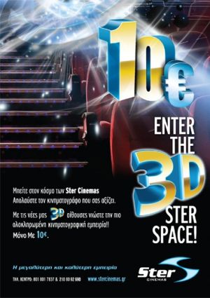 Μάλιστα έκαναν ένα βήμα παραπέρα και προσφέρουν τις 3d προβολές στην τιμή των 10€.