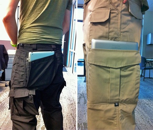 Υπάρχουν παντελόνια, όπως αυτό της φωτογραφίας που έχουν τσέπες για να χωράει το λατρεμένο σας iPad. Έτσι, γλιτώνετε τα τσαντάκι και τις θήκες που κλέβονται κι εύκολα… αλλά μη το βάλετε στην κ@λότσεπη όπως ο νέος της φωτογραφίας… γιατί θα καταλήξει σε ξένα χέρια…