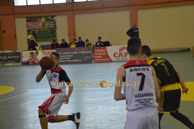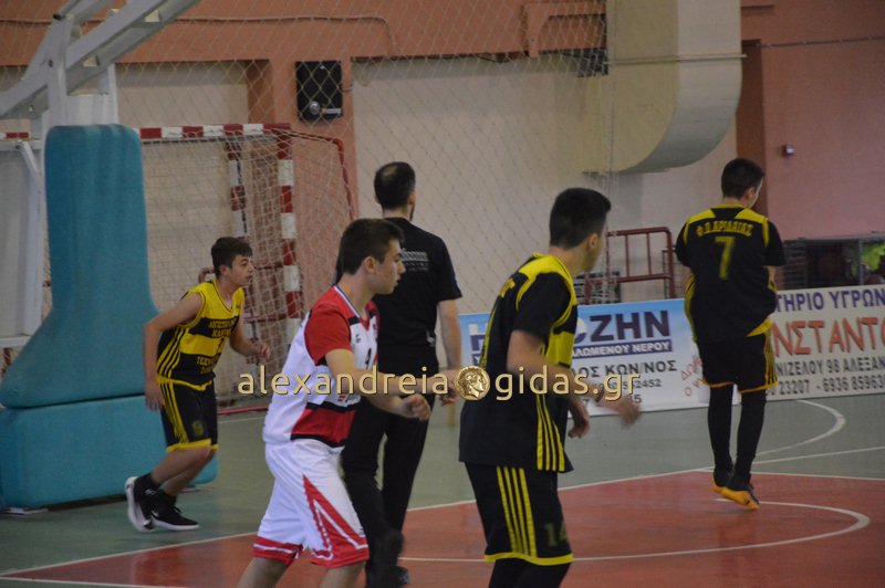 Οι παίκτες της Αριδαίας μπήκαν πολύ αποφασισμένοι στο παιχνίδι και προηγήθηκαν αρχικά με 6-0.Ο Άθλος αντέδρασε πολύ γρήγορα και με δυνατή άμυνα και ευστοχία από τη γραμμή των τριών πόντων πέρασε μπροστά και έκλεισε προηγούμενος την πρώτη περίοδο (21-15).