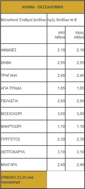 Μόνο για διόδια θα χρειαστείτε 46,50 ευρώ για το ταξίδι μετ ΄επιστροφής σύμφωνα με τις τιμές που αναγράφονται στους πίνακες της Γενικής Γραμματείας Συγχρηματοδότησης Δημοσίων έργων.