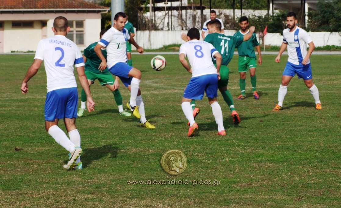 Την άτυπη ρεβάνς για την ήττα στο κύπελλο πήρε η ομάδα της Αλεξάνδρειας από την Ειρηνούπολη κερδίζοντάς της εντός έδρας με 1-0 για το πρωτάθλημα της Α1 στην ΕΠΣ Ημαθίας.