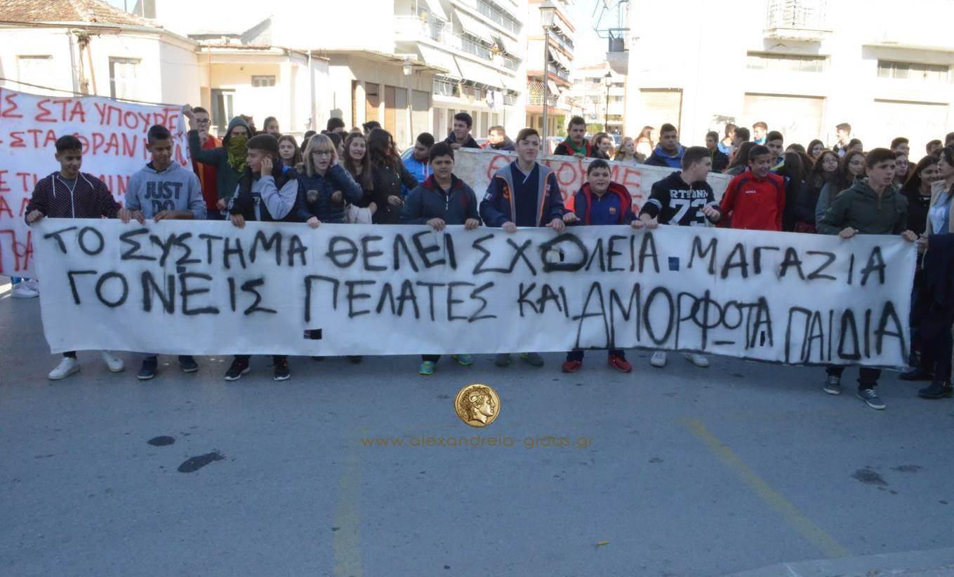 Πορεία των μαθητών στο κέντρο της Αλεξάνδρειας με συνθήματα και πανό (βίντεο HD-φώτο)