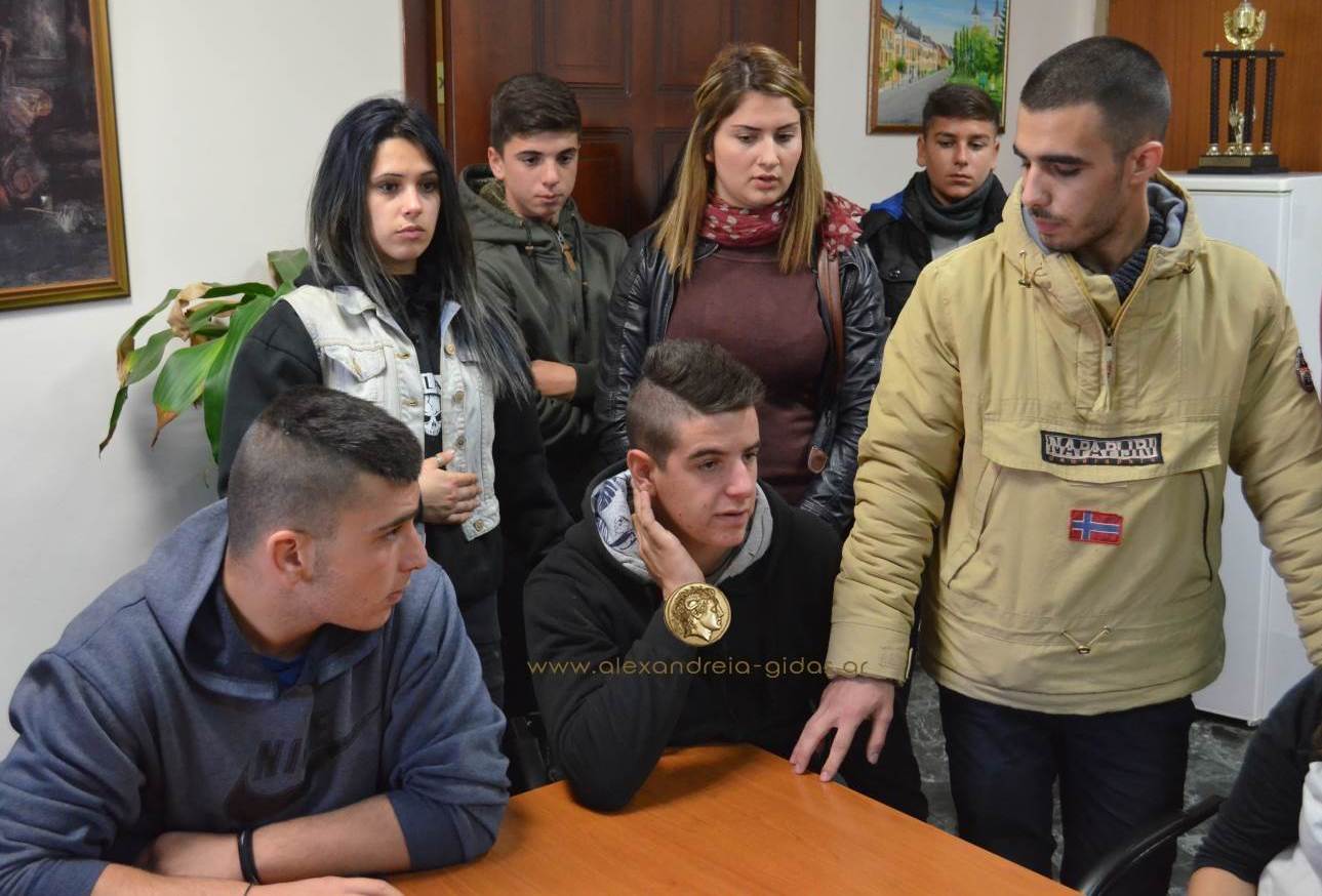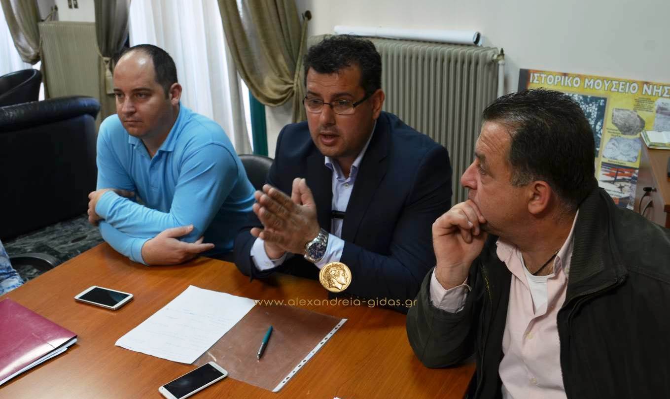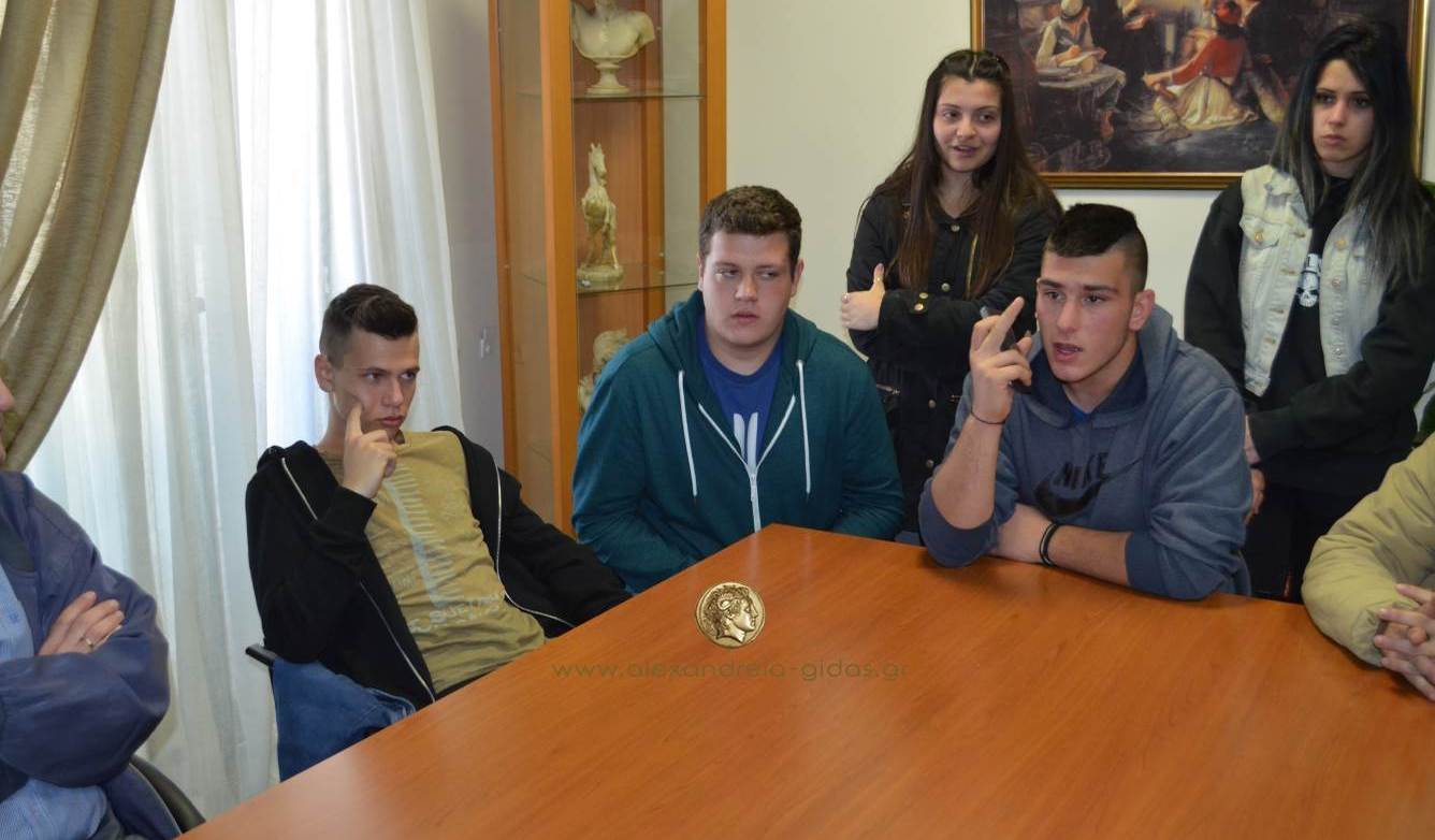 Εκεί τους υποδέχθηκε ο αντιδήμαρχος Κώστας Ναλμπάντης που αναπληρώνει τον δήμαρχο ο οποίος απουσιάζει το εξωτερικό. Μαζί με τον Κώστας Ναλμπάντη στο δημαρχείο ήταν ο αντιδήμαρχος Σωτήρης Τόκας, ο αντιδήμαρχος Στέφανος Δριστάς και ο πρόεδρος της Δημοτικής Ενότητας Αλεξάνδρειας Μενέλαος Λυμπεράκης.