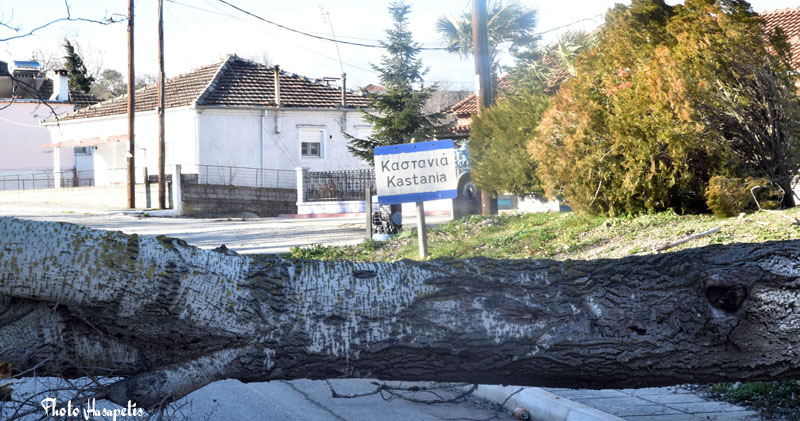 Ο αέρας έριξε δέντρο στην Καστανιά που μπλόκαρε την κυκλοφορία (φώτο)