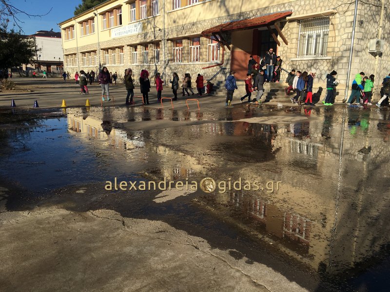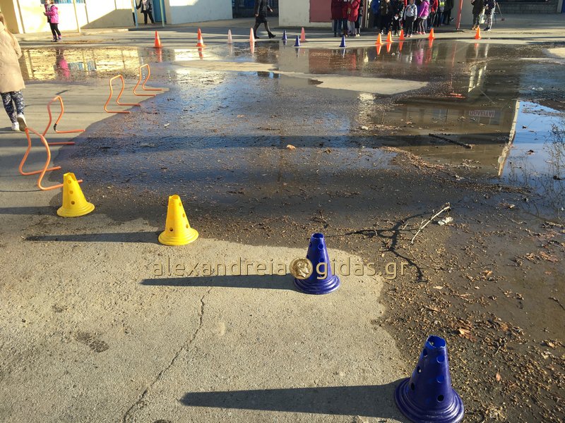 Πλημμύρισε ο αύλειος χώρος στα 1ο-5ο Δημοτικά Σχολεία και το Ειδικό Σχολείο της Αλεξάνδρειας.