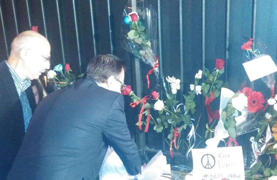 Η αντιπροσωπεία της ΔΗΜΑΡ κατέθεσε λουλούδια στο προαύλιο χώρο της πρεσβείας ενώ ο Γάλλος πρέσβης στην Αθήνα Κριστόφ Σαντεπί, συνομίλησε με τον πρόεδρο της ΔΗΜΑΡ για τα δραματικά γεγονότα στο Παρίσι.