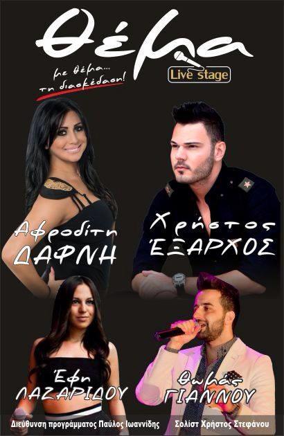 Κάθε Παρασκευή και Σάββατο το ΘΕΜΑ LIVE STAGE σας υποδέχεται στον πεζόδρομο Κουφαλίων με δυνατό πρόγραμμα και καταπληκτικές φωνές για ατελείωτη διασκέδαση.