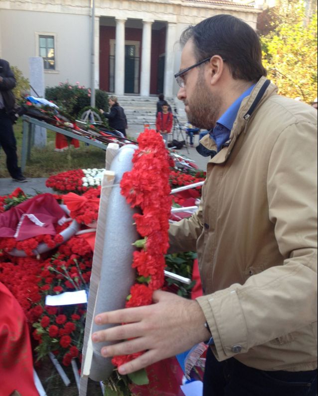 Στεφάνι κατέθεσε σήμερα στον ηρωικό χώρο του Πολυτεχνείου, αποτίοντας ελάχιστο φόρο τιμής στην 42η επέτειο της εξέγερσης του Νοέμβρη του ’73, αντιπροσωπεία μελών της Δημοκρατικής Αριστεράς με επικεφαλής τον πρόεδρο της Θανάση Θεοχαρόπουλο οποίος μετά την κατάθεση ο δήλωσε: