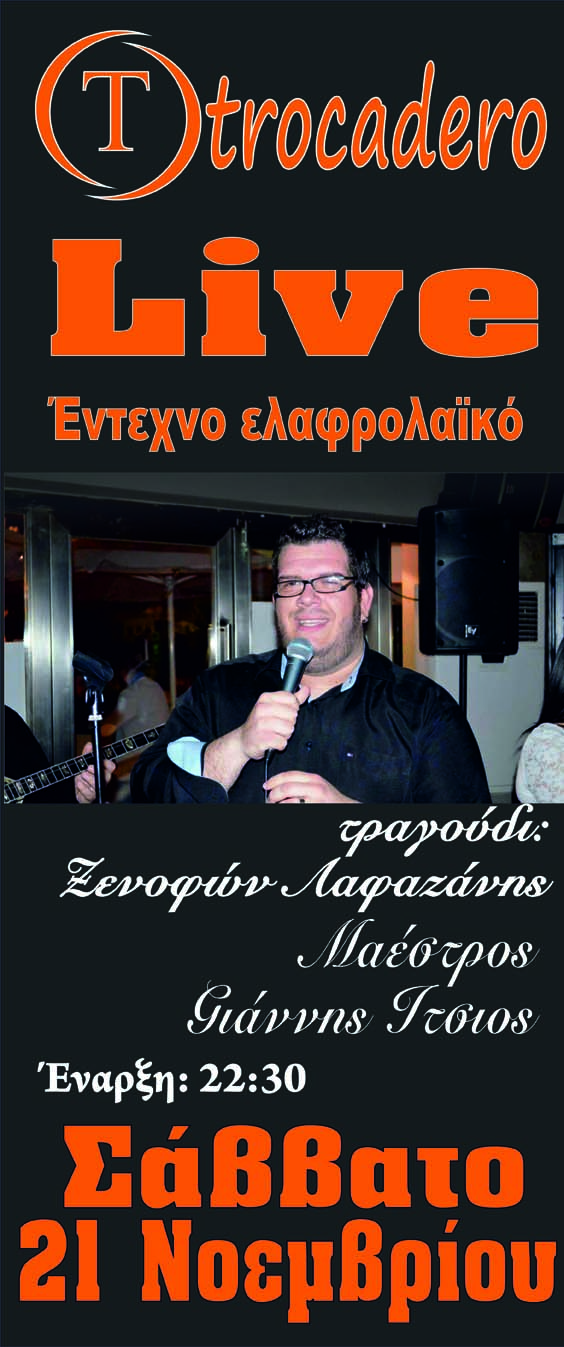Αξίζει να βρεθείτε το Σάββατο στο TROCADERO γιατί θα παρουσιαστεί ένα πρωτότυπο και ποικίλο πρόγραμμα για όλα τα γούστα και για όλες τις προτιμήσεις.