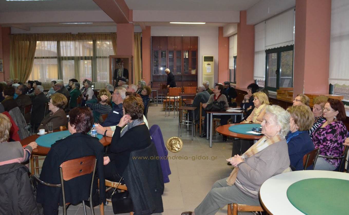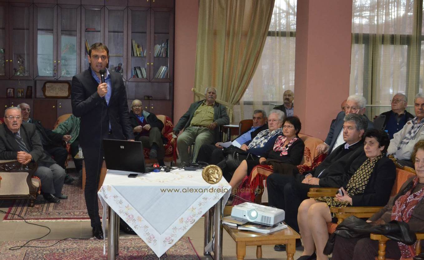 Το θέμα ήταν πολύ σημαντικό και η αίθουσα του ΚΑΠΗ κατακλείστηκε από μέλη και από δημότες της Αλεξάνδρειας που με ενδιαφέρον άκουσαν αυτά που είπε ο νέος επιστήμονας ο οποίος δέχτηκε ερωτήσεις στο τέλος της ομιλίας και έκανε διάλογο με όλους.