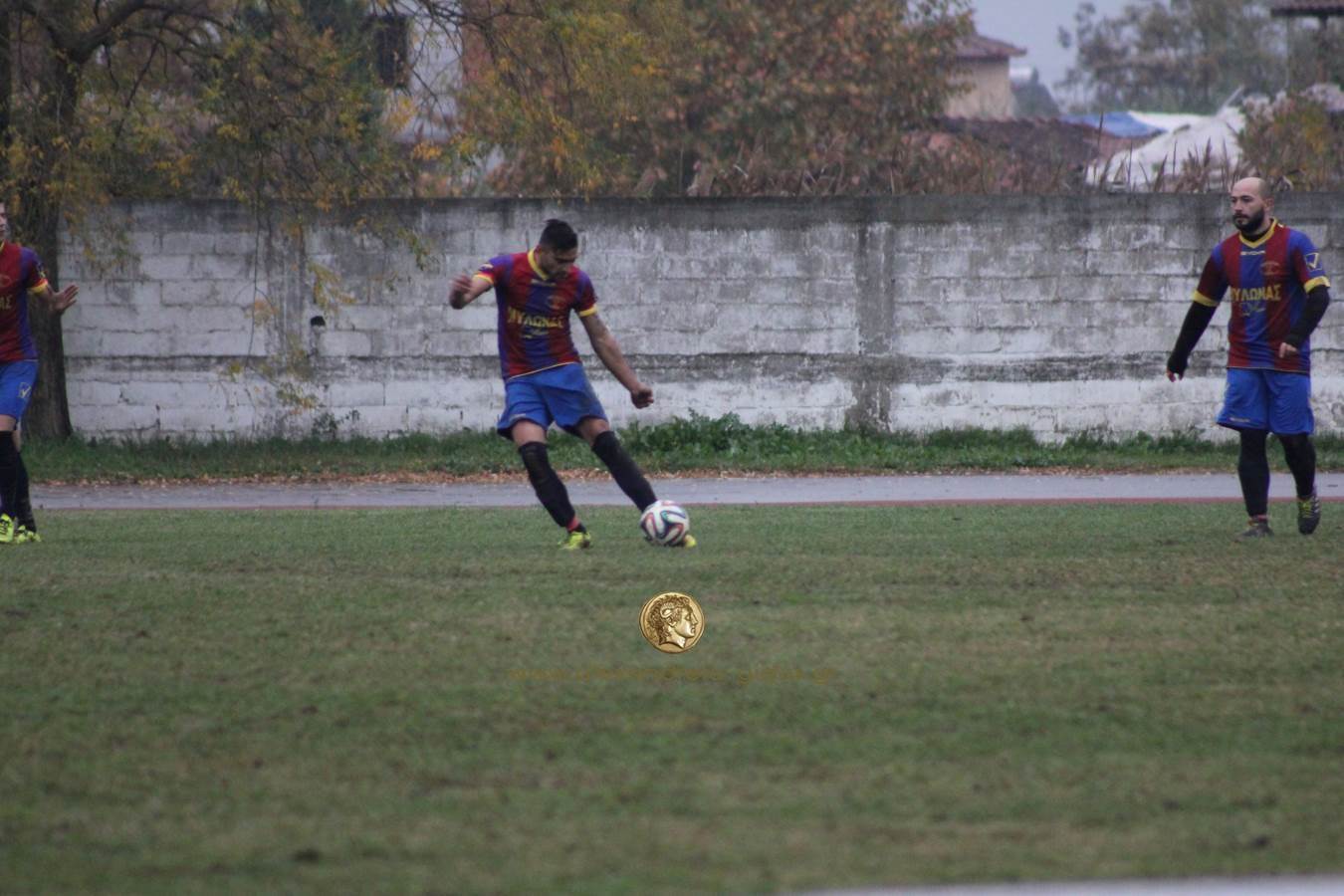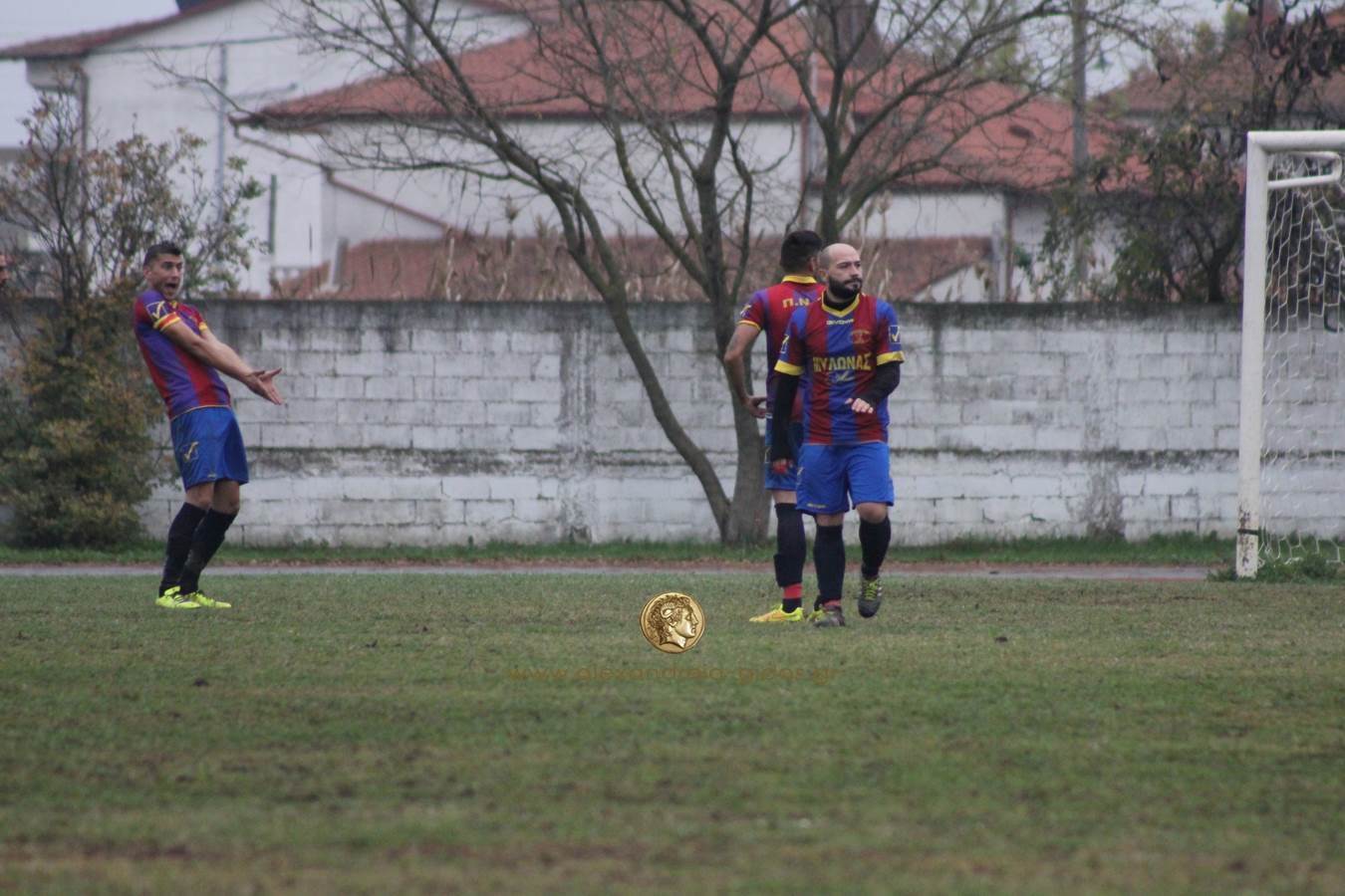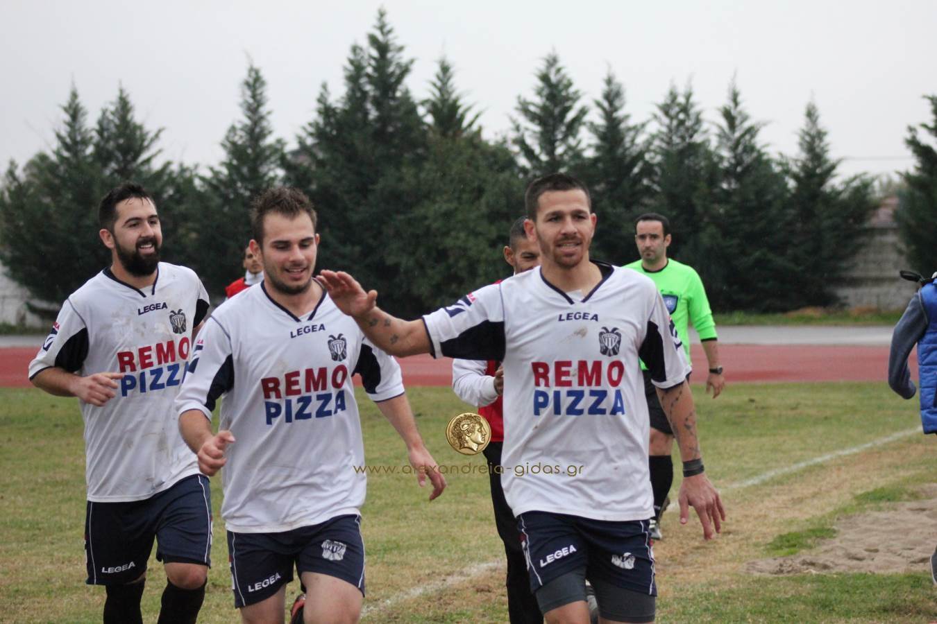 Το σκορ άνοιξε με το ξεκίνημα του αγώνα ο Γιώργος Κίτσας (1-0). Στο 56΄ ο Μαρτσέλος διπλασίασε τα τέρματα των γηπεδούχων ενώ δύο λεπτά αργότερα ο Ευγένης Κίτσας μείωσε για τον Άραχο σε 2-1. Με εύστοχο χτύπημα πέναλτι ο Γιώργος Κίτσας πέτυχε το 3-1 ενώ με τον ίδιο τρόπο ο Κώστας Κίτσας σημείωσε το τελικό 3-2.