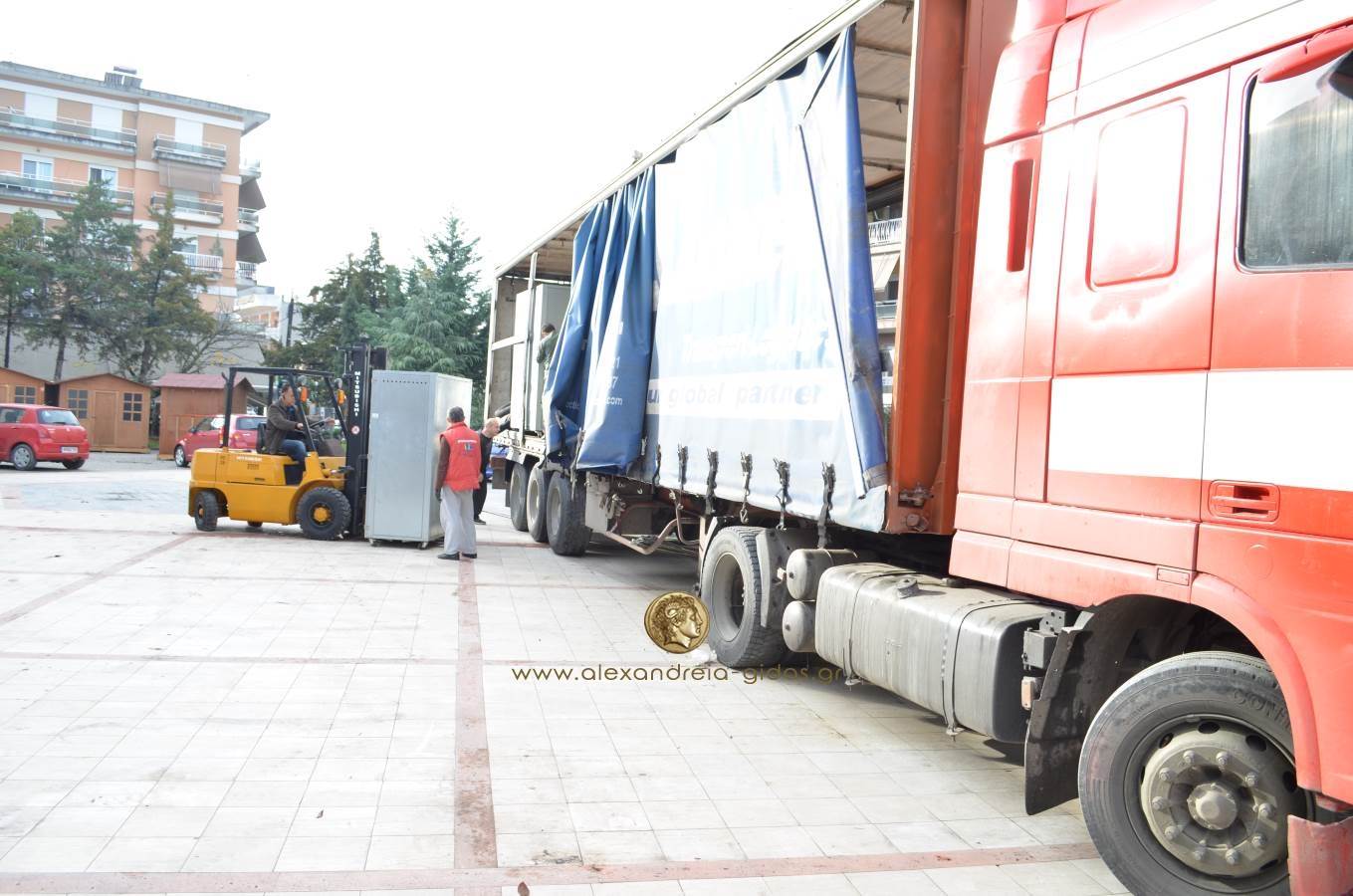 Το πρωί της Πέμπτης 26 Νοεμβρίου έφτασε το φορτηγό της εταιρίας η οποία θα στήσει το παγοδρόμιο στην Αλεξάνδρεια.