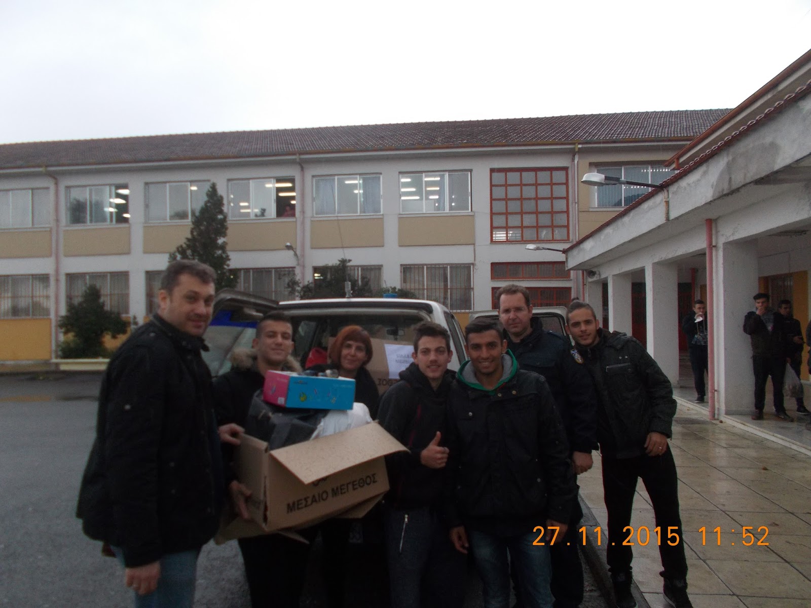 Οι μαθητές & καθηγητές του ΕΠΑΛ & Ε.Κ. Αλεξάνδρειας αντιλαμβανόμενοι την τεράστια ανάγκη για βοήθεια στους πρόσφυγες και κυρίως στα παιδιά των προσφύγων, κινητοποίησαν όλες τις δυνάμεις τους και με την υποστήριξη του Αρχηγείου της Ελληνικής Αστυνομίας και του Π. Ο. ΣΥ. ΦΥ. (Πανελλήνια Ομοσπονδία Συνοριακών Φυλάκων), ανέλαβαν πρωτοβουλία για να συγκεντρώσουν παιδικά ρούχα, υποδήματα αλλά και γάλατα μακράς διάρκειας μέσα από τις τάξεις τους.