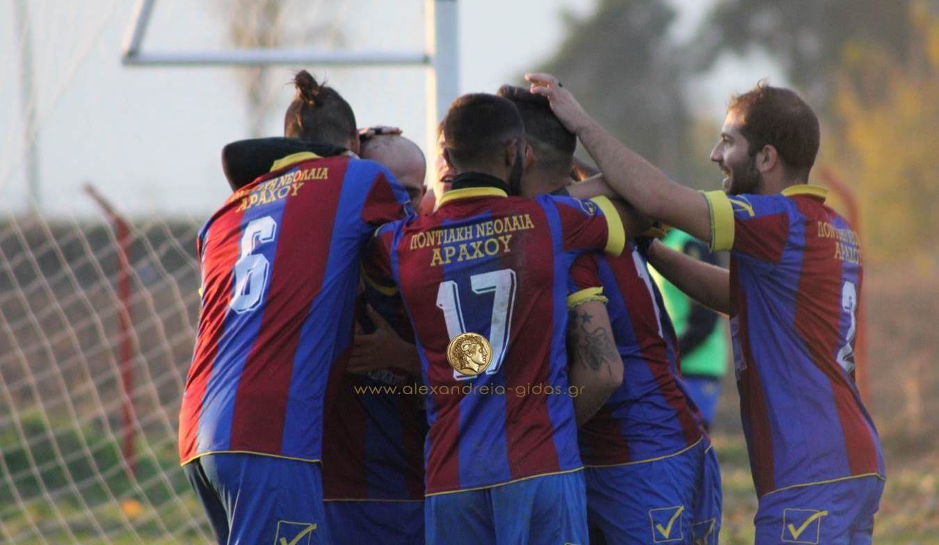 Αν και βρέθηκε πίσω στο σκορ, η Ποντιακή Νεολαία Αράχου κατάφερε να γυρίσει το παιχνίδι και με ανατροπή να πάρει τους τρεις βαθμούς της νίκης αγωνιζόμενη στην έδρα της κόντρα στον Αχιλλέα της Νάουσας για την Α1 της ΕΠΣ Ημαθίας.