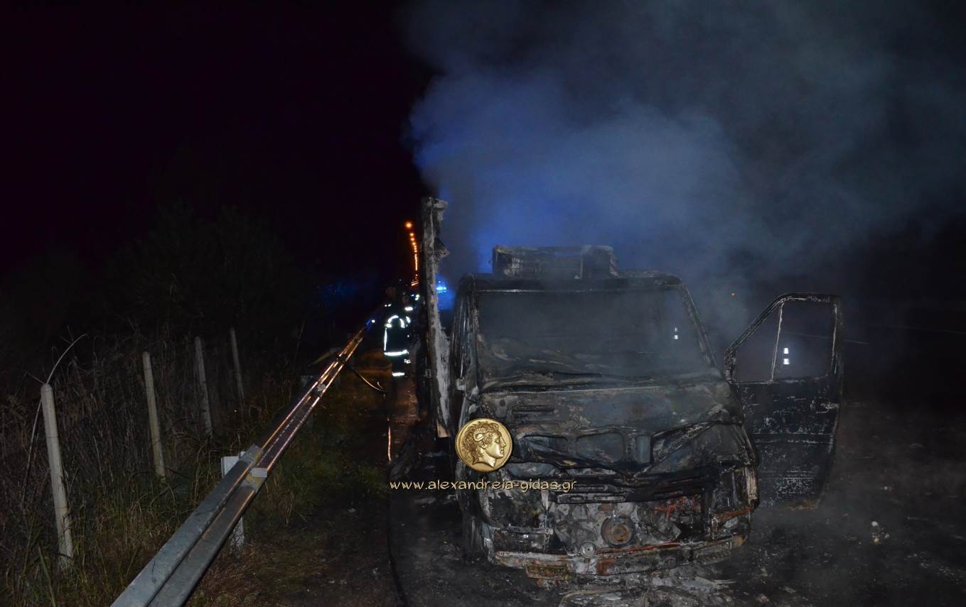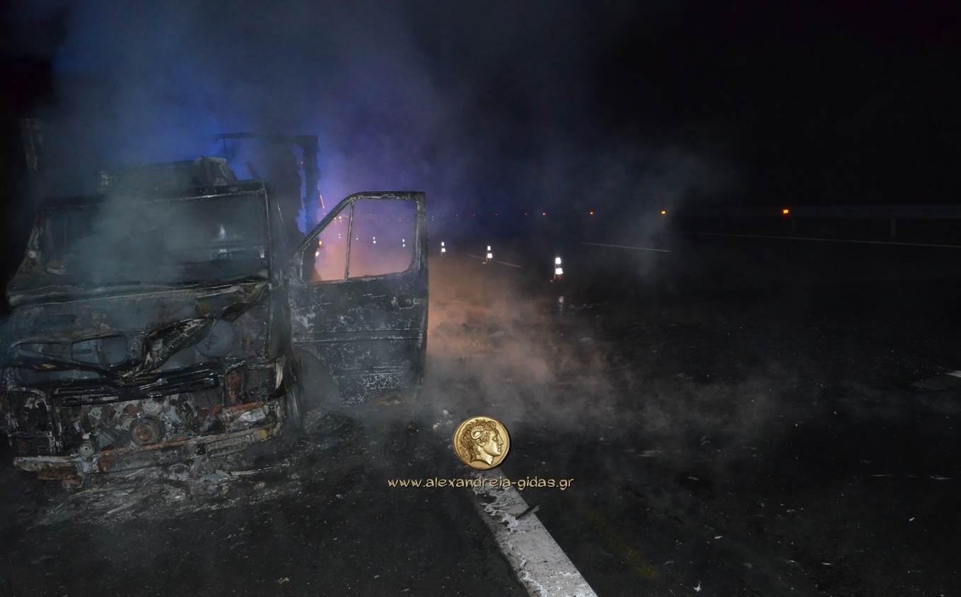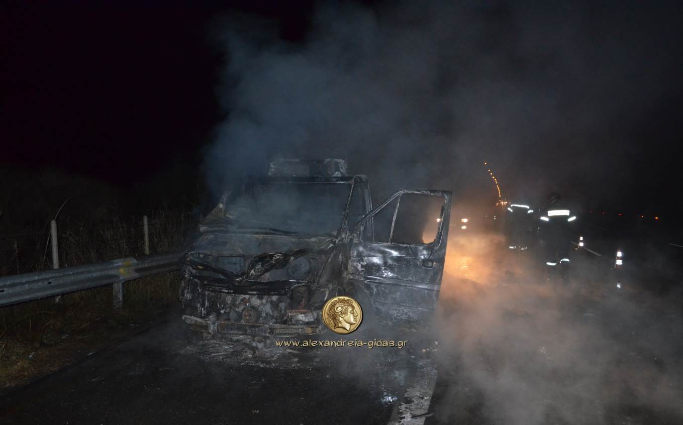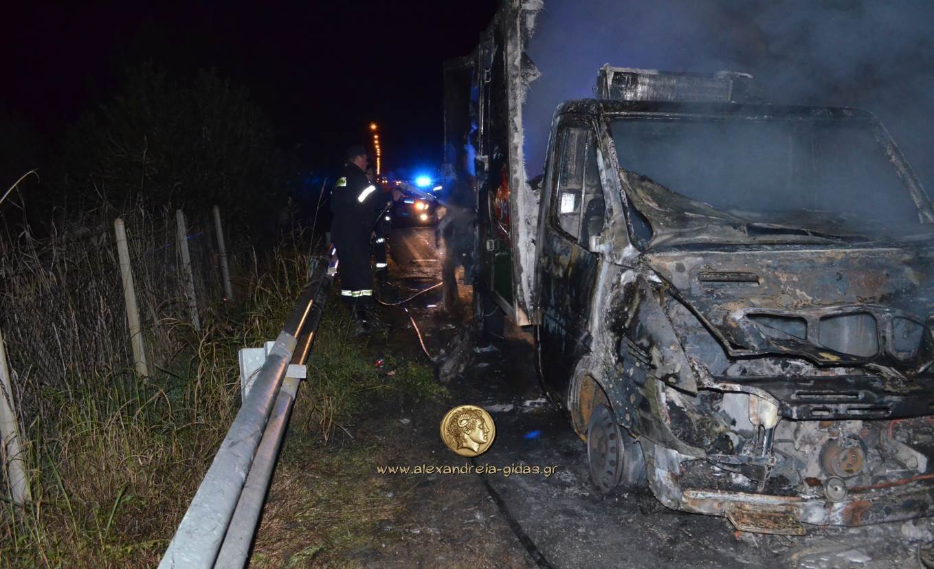 Οδηγός ο οποίος εκτελούσε δρομολόγιο από Θεσσαλονίκη, αντιλήφθηκε καπνούς στο όχημά του πάνω στη γέφυρα λίγο πριν τα διόδια του Αιγινίου. Σταμάτησε στην δεξιά πλευρά του δρόμου, βγήκε από το όχημα το οποίο στη συνέχεια καταστράφηκε ολοσχερώς όπως θα δείτε στις εικόνες που ακολουθούν.