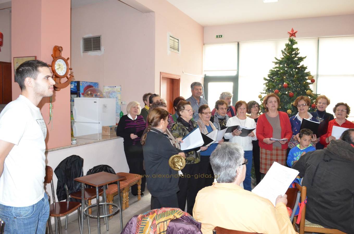 Η χορωδία του ΚΑΠΗ τραγούδησε τα Χριστουγεννιάτικα κάλαντα υπό την καθοδήγηση του μαέστρου της χορωδίας Αυγουστίνου Κυριακού.