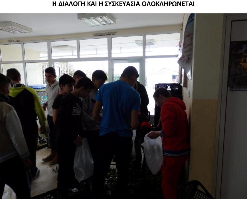 Άλλωστε και στα μανάβικα δεν γίνεται συνέχεια αυτή η διαδικασία; Και για τους βιαστικούς και καλοπροαίρετους (;) που θα ισχυριστούν: «καλά έτσι κάποιοι χάνουν μαθήματα και χάνεται και ο γνωστικός χαρακτήρας του σχολείο»; Θα τους απαντήσουμε ότι το σχολείο έχει σκοπό να προσφέρει εκτός των άλλων και κοινωνική μόρφωση αλλά και δεξιότητες και ρόλους στα μέλη του. Αυτό δείχνει και το επιβεβαίωσε στην περίπτωση μας η προθυμία, η χαρά της συμμετοχής και της εμπειρίας που αποκόμισαν οι μαθητές από τη συγκεκριμένη διαδικασία – διαλογής και διανομής – την οποία αντιμετώπισαν με πολύ χιούμορ αλλά και περίσια υπευθυνότητα.