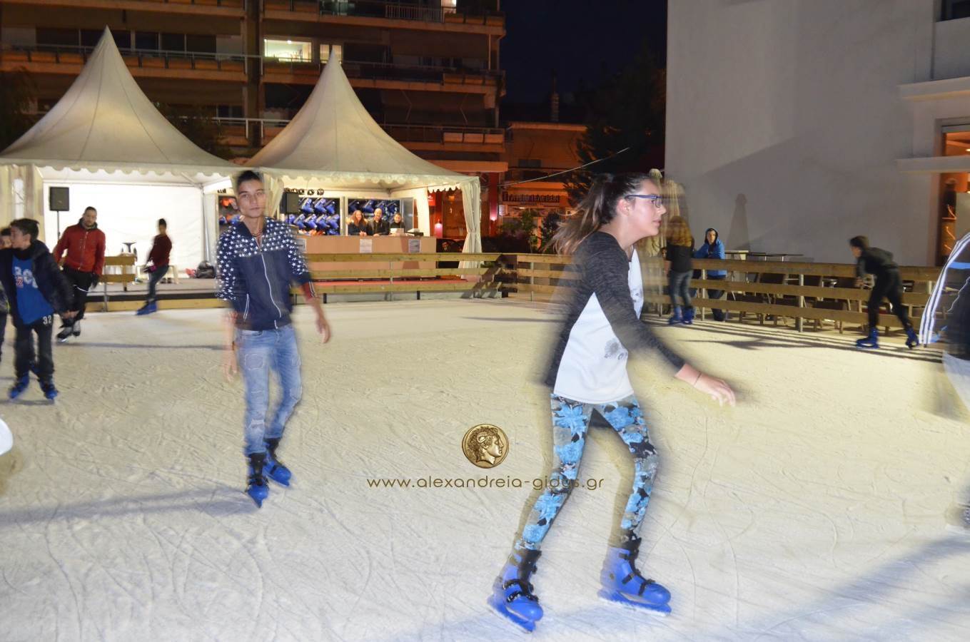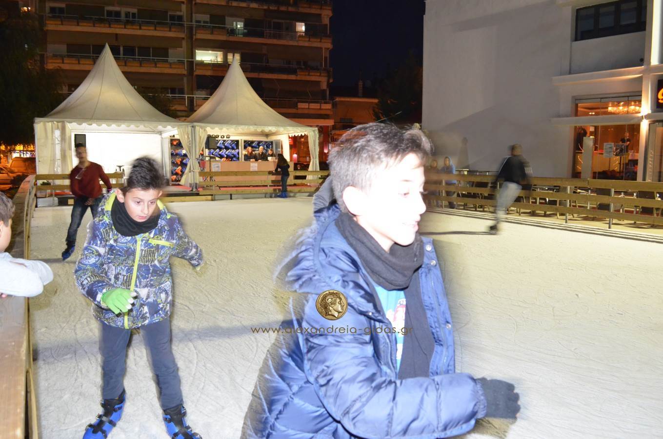 Το απόγευμα της Πέμπτης 3 Δεκεμβρίου ξεκίνησε η λειτουργία του παγοδρομίου Αλεξάνδρειας μπροστά στο Πνευματικό Κέντρο της πόλης μας.