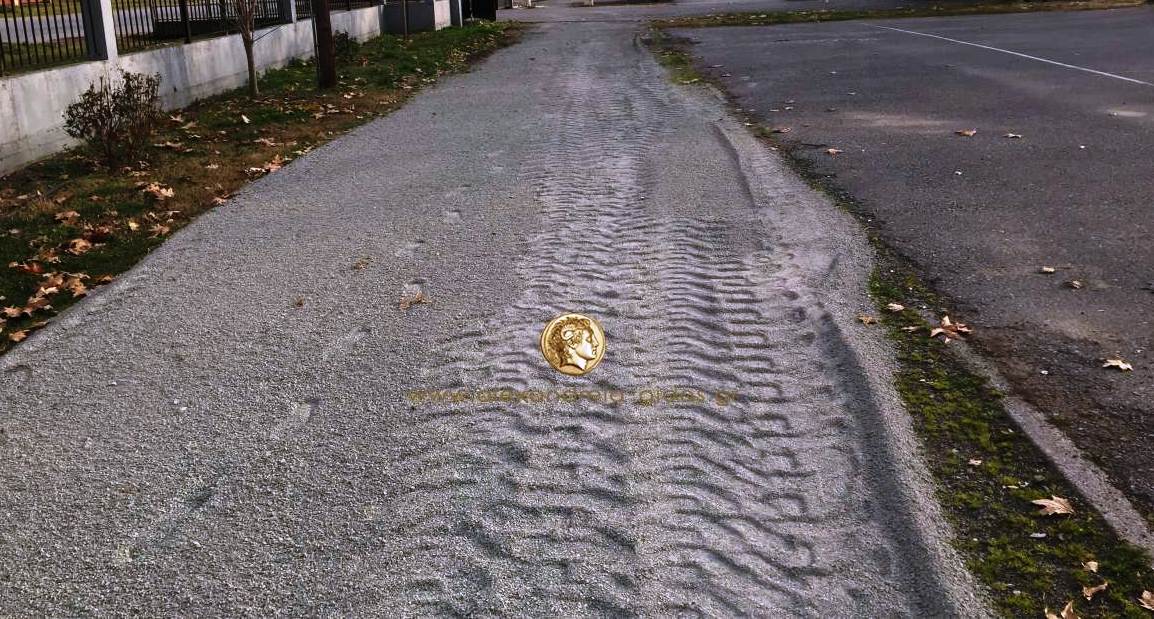 Όπως θα δείτε στις εικόνες παρακάτω, τοποθετήθηκε μικρό χαλίκι στα σημεία τα οποία πλημμύριζαν κατά τη διάρκεια των βροχοπτώσεων και εμπόδισαν την διέλευση όσων περπατούσαν και έκαναν γυμναστική στον συγκεκριμένο χώρο του αμφιθεάτρου.