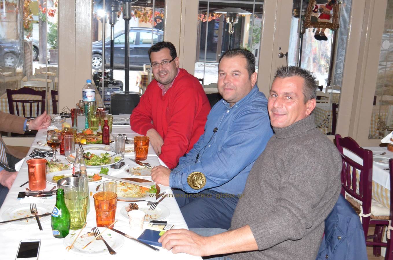 Στην παρέα ο πρώην αντιδήμαρχος Νίκος Αλεξόπουλος, ο πρόεδρος των Παλαιμάχων Αλεξάνδρειας Κώστας Μαστοροδήμος, ο αντιδήμαρχος Κώστας Ναλμπάντης, ο πρόεδρος της Σχολικής Επιτροπής Δευτεροβάθμιας Εκπαίδευσης Δημήτρης Συρόπουλος και ο δημοτικός σύμβουλος Γιάννης Κιρκιλιαννίδης.