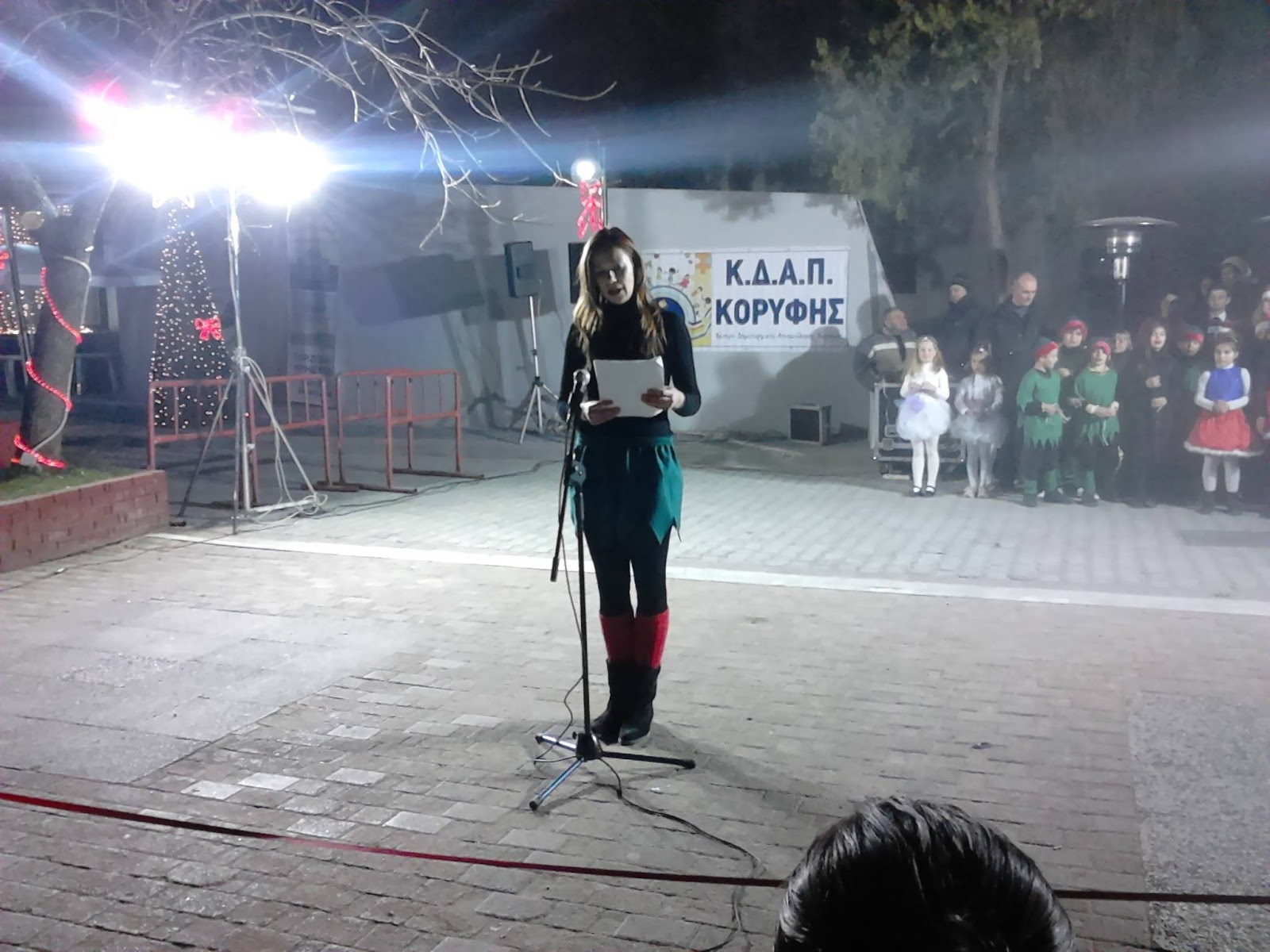 Την Παρασκευή 18 Δεκεμβρίου 2015 το Κέντρο Δημιουργικής Απασχόλησης Παιδιών Κορυφής, πραγματοποίησε την Χριστουγεννιάτικη θεατρική παράσταση «Χριστούγεννα με την κυρία κρίση», στον πεζόδρομο της Αλεξάνδρειας.