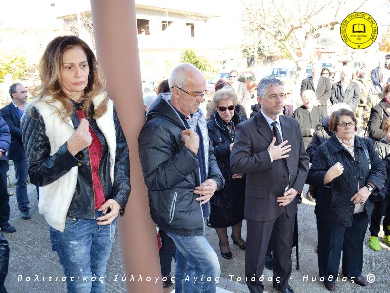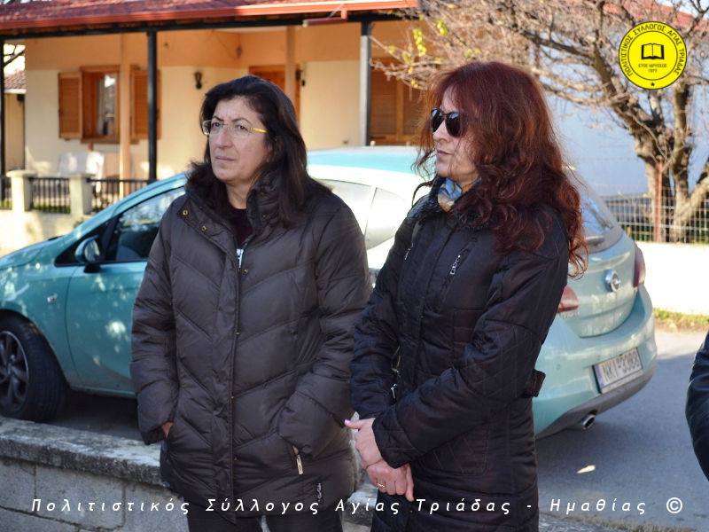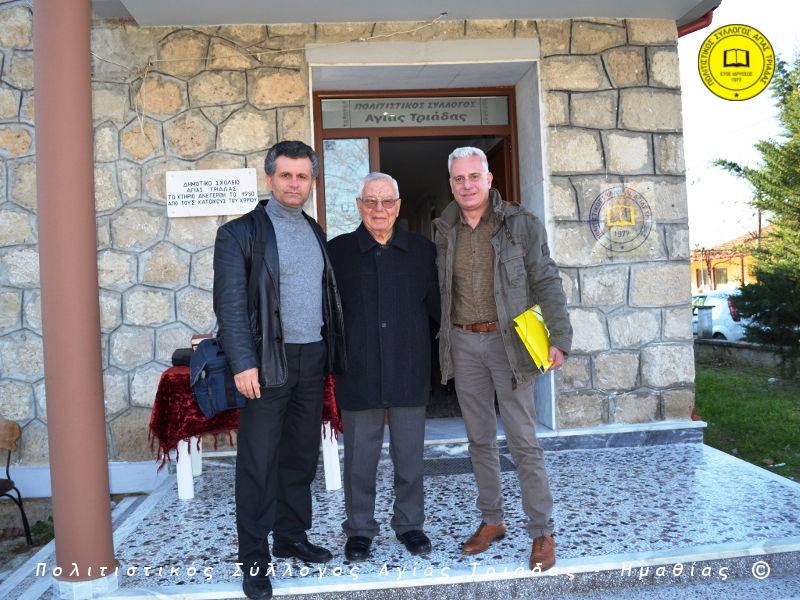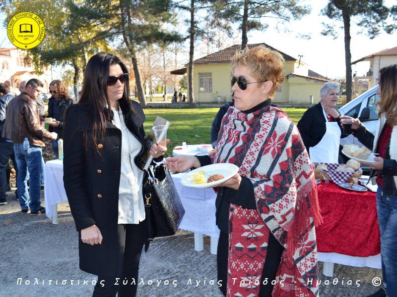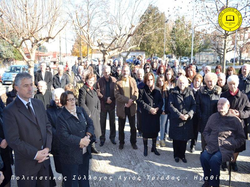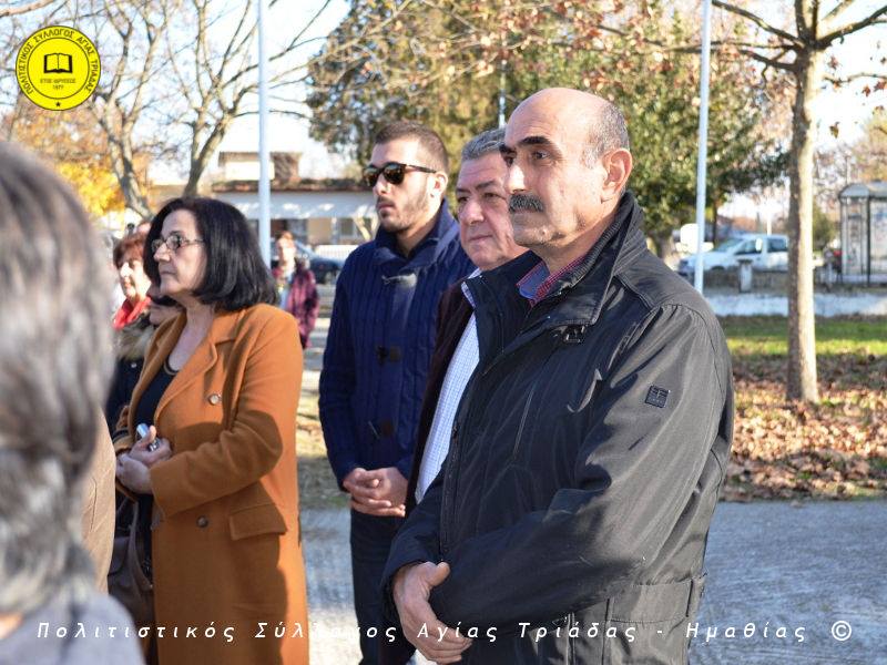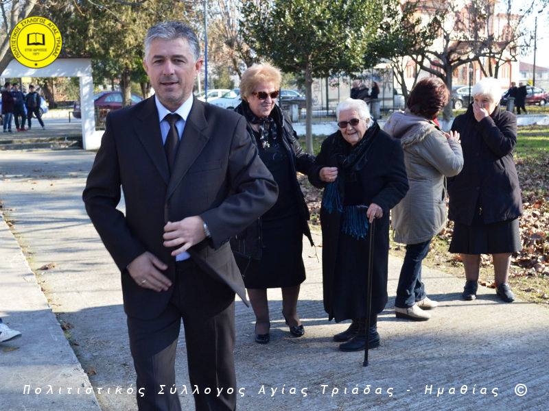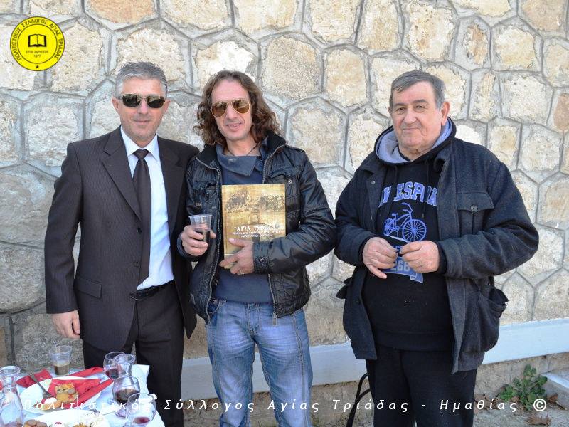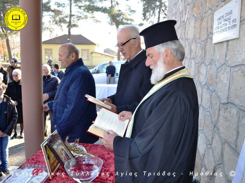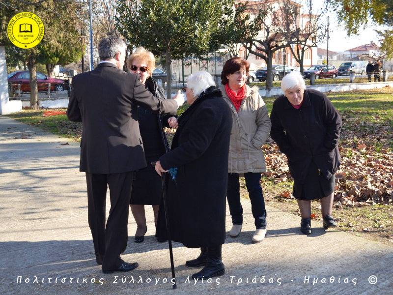 Ο γηραιότερος κάτοικος της Αγίας Τριάδας κ. Γιώργος Σισμανίδης και πρόεδρος του Πολιτιστικού Συλλόγου Αγίας Τριάδας Γιώργος Μπλαχάβας έκοψαν την κορδέλα παρουσία πλήθους κόσμου. Ανάμεσα στους παρευρισκόμενους ο βουλευτής του ΣΥΡΙΖΑ Ημαθίας Χρήστος Αντωνίου και ο αντιδήμαρχος Μελίκης Νίκος Σαρακατσιάνος.