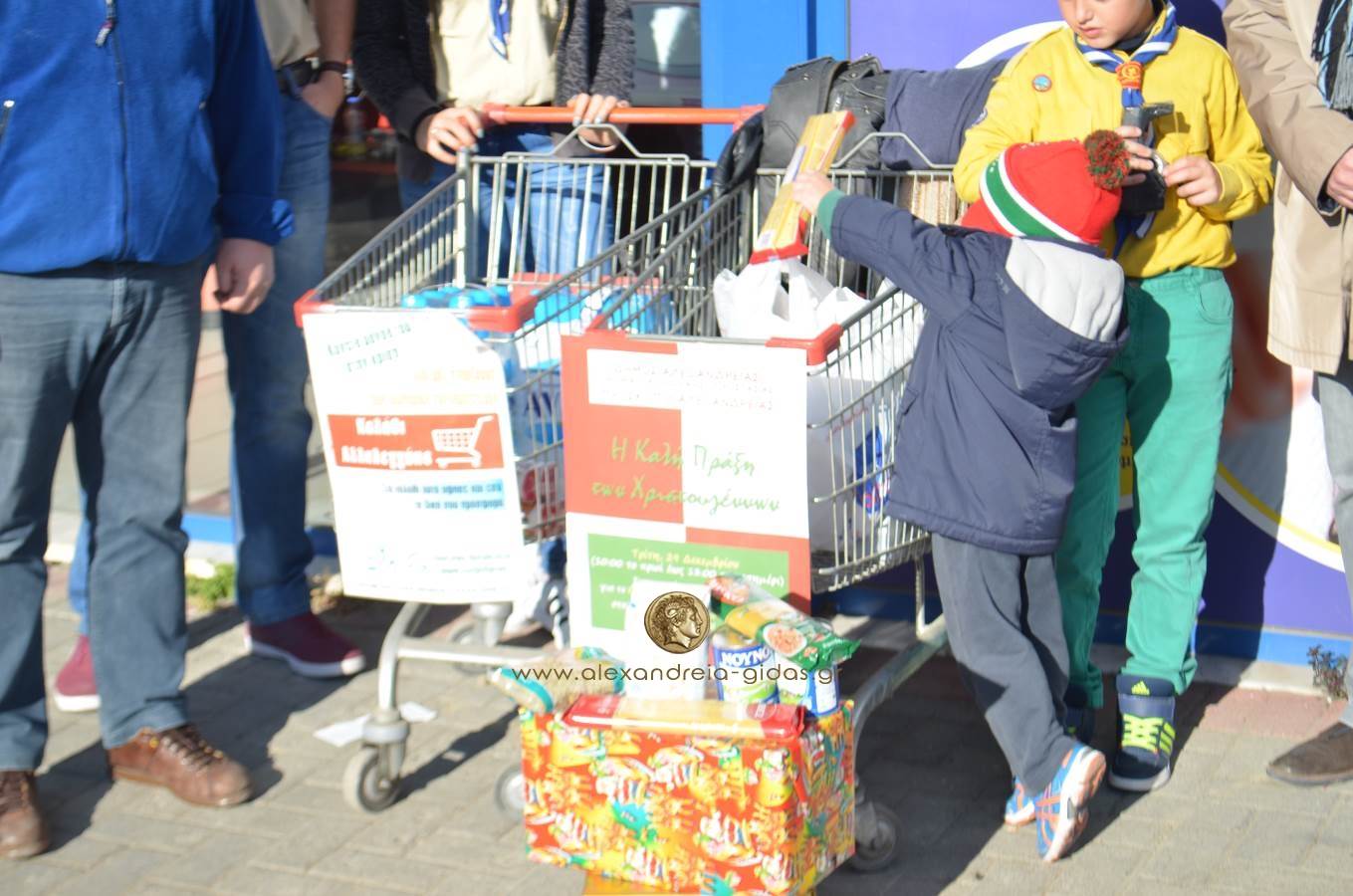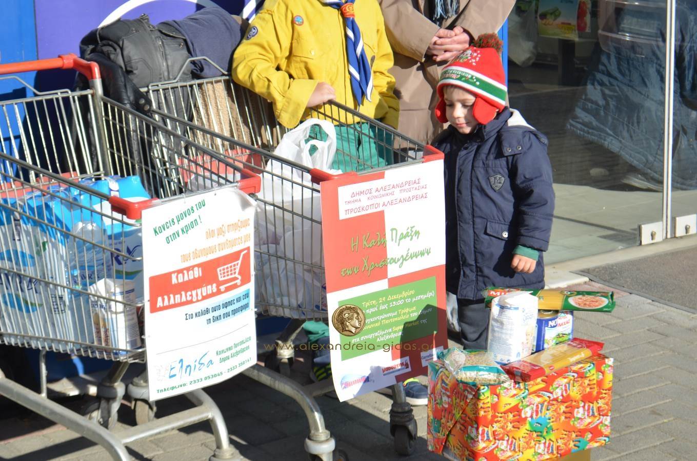 Το Τμήμα Κοινωνικής Προστασίας του δήμου Αλεξάνδρειας και οι Πρόσκοποι Αλεξάνδρειας, στα πλαίσια της συγκέντρωσης τροφίμων για το Κοινωνικό Παντοπωλείο του Δήμου μας, ενόψει των Χριστουγεννιάτικων εορτών συνδιοργανώνουν από το πρωί την “Καλή πράξη των Χριστουγέννων“ και σας προσκαλούν να ενισχύσετε την προσπάθεια αυτή, γεμίζοντας τα καλάθια με τρόφιμα.