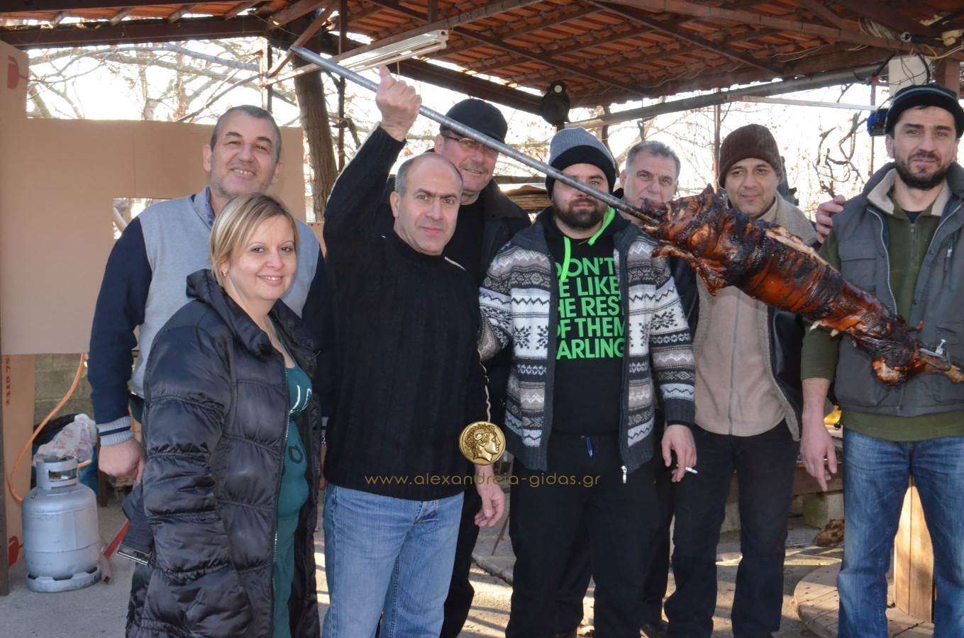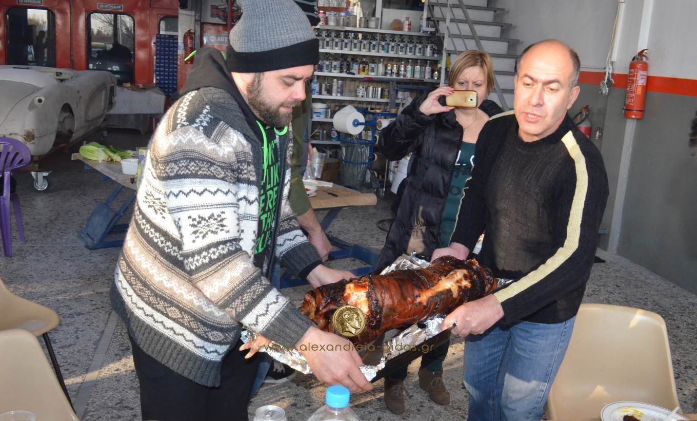 Στο συνεργείο του Αβραάμ Γεώργιου και του Διονύση Πούλιου συναντήθηκαν φίλοι, συνεργάτες και πελάτες του καταστήματος και ευχήθηκαν καλή χρονιά σουβλίζοντας για το καλό ένα γουρουνόπουλο.