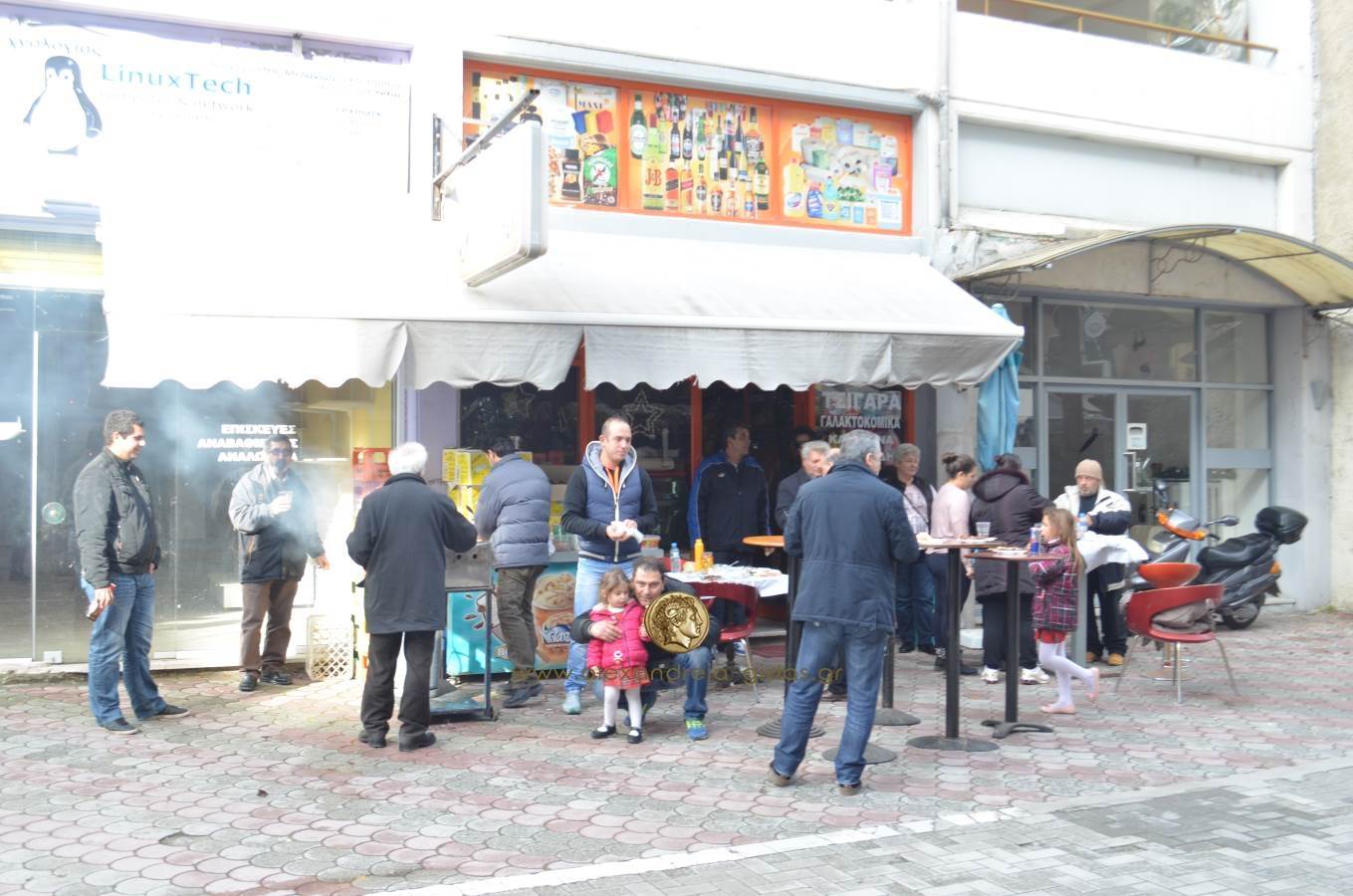 Για την ονομαστική του εορτή έψησε και κέρασε μπροστά στην επιχείρηση που διατηρεί στον πεζόδρομο της Αλεξάνδρειας ο Γιάννης Κουμαντζιάς το μεσημέρι της Πέμπτης 7 Ιανουαρίου.
