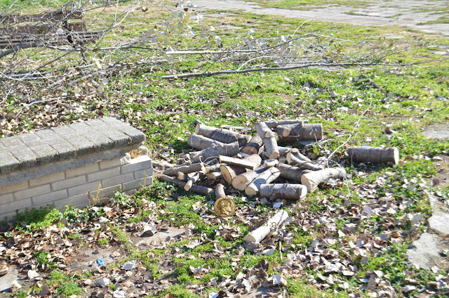 Συνεργεία του δήμου Αλεξάνδρειας έκοψαν ξερά κλαδιά και δέντρα το πρωί της Παρασκευής στην πλατεία του ΟΣΕ.