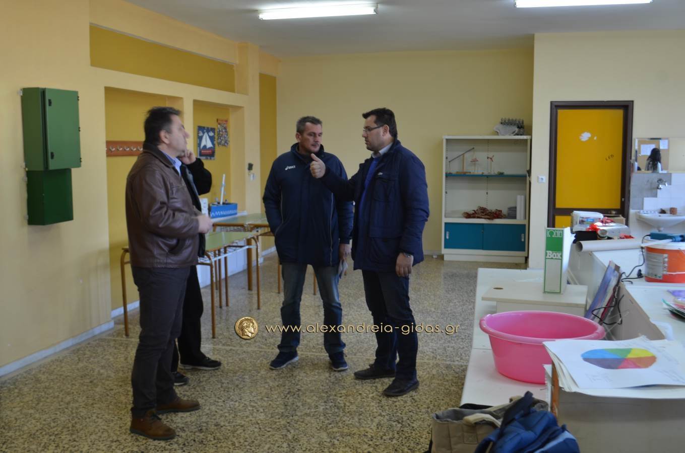 Με αφορμή την επίσκεψη το πρωί της Τρίτης 12 Ιανουαρίου ο Κώστας Ναλμπάντης και ο Δημήτρης Συρόπουλος ξεναγήθηκαν στους χώρους του Γυμνασίου από τον κ. Γερακιώτη ο οποίος έδειξε τις αίθουσες του κτιρίου και την βιβλιοθήκη που υπάρχει σε αυτό.