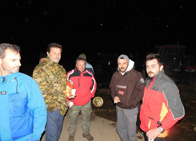 Το σκοτάδι στο μπλόκο των αγροτών στο Νησέλι έπεσε όπως και η θερμοκρασία.
