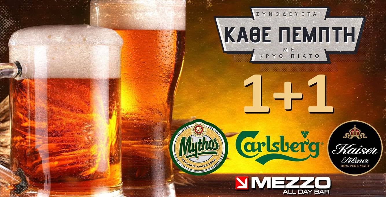 Οι υπεύθυνοι του μαγαζιού από σήμερα και κάθε Πέμπτη θα σερβίρουν μαζί με τις 1+1 βαρελίσιες μπύρες του ΜΕΖΖΟ και ένα κρύο πιάτο έκπληξη!