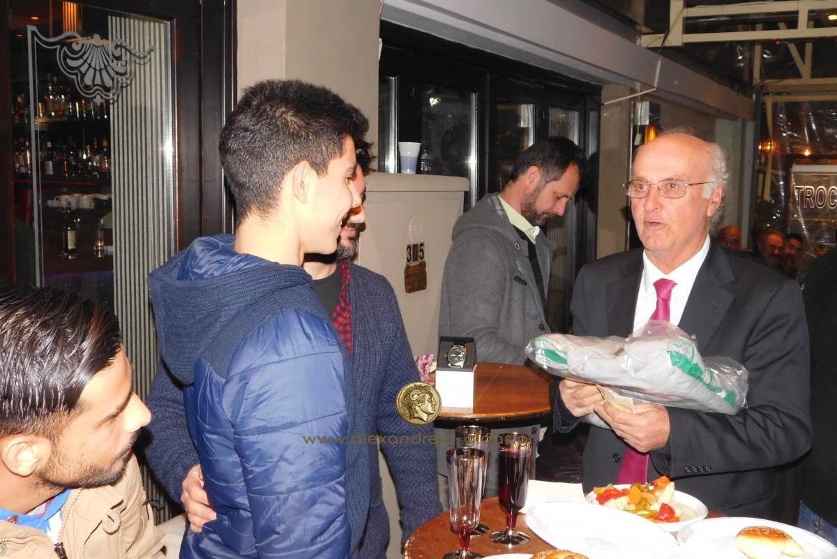 Τυχερός της βραδιάς από τους ποδοσφαιριστές ο Νίκος Τσιρίδης με δώρο φόρμα από την ΕΠΣ Ημαθίας, χρηματικό ποσό από τον κ. Καραμελίδη και ρολόι από τον ταμία της ομάδας Βασίλη Παπαεμμανουήλ. Τυχερή από τους καλεσμένους η διοίκηση του ΠΑΟΚ Αλεξάνδρειας που πέτυχε το φλουρί.