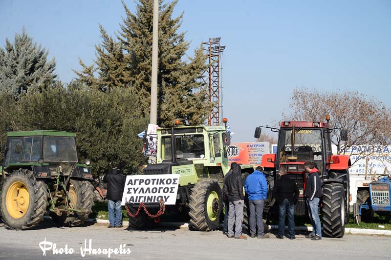 Σε συμβολικό αποκλεισμό του επαρχιακού δρόμου προχώρησαν σήμερα Παρασκευή λίγο πριν τις 12 το μεσημέρι αγρότες της περιοχής Αιγινίου Πιερίας με τα τρακτέρ.