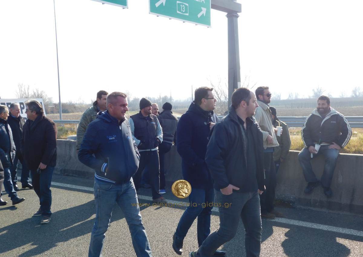 Οι αγρότες απέκλεισαν για περίπου μισή ώρα και τις δύο κατευθύνσεις προς Βέροια και προς Θεσσαλονίκη συνεχίζοντας την διαμαρτυρία τους προς τα μέτρα της κυβέρνησης για το ασφαλιστικό και το φορολογικό.