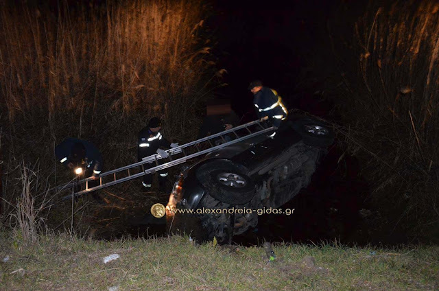 Χρειάστηκε η παρέμβαση της πυροσβεστικής υπηρεσίας για να βγει ο οδηγός από το όχημα και από το κανάλι.