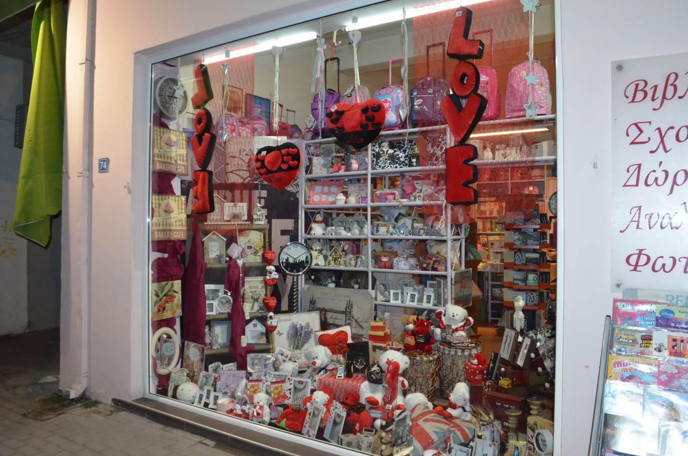 Οι υπεύθυνοι του καταστήματος έχουν ετοιμάσει ολοκαίνουρια βιτρίνα με αντικείμενα που αφορούν τη γιορτή των ερωτευμένων ενώ εντός του καταστήματος θα βρείτε ακόμα μεγαλύτερη ποικιλία από δώρα για τους αγαπημένους και τις αγαπημένες σας.