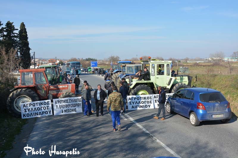 Έκλεισαν με τα τρακτέρ και σήμερα τον δρόμο στο Αιγίνιο οι αγρότες της Πιερίας (φώτο)