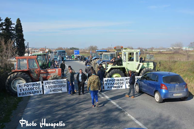 XXXXXΣε συμβολικό αποκλεισμό του επαρχιακού δρόμου προχώρησαν σήμερα λίγο πριν τις 12 το μεσημέρι αγρότες της περιοχής Αιγινίου Πιερίας με τα τρακτέρ.