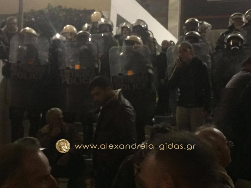 Επεισόδια και χημικά έπεσαν όταν οι αγρότες προσπάθησαν να μπουν στο Βελλίδειο και η ισχυρή δύναμη των ΜΑΤ τους εμπόδισαν.