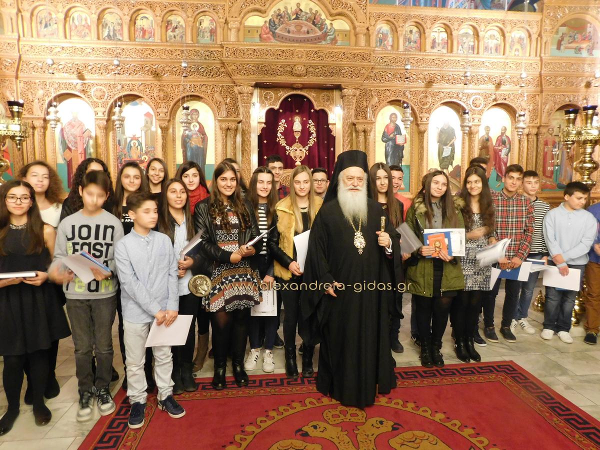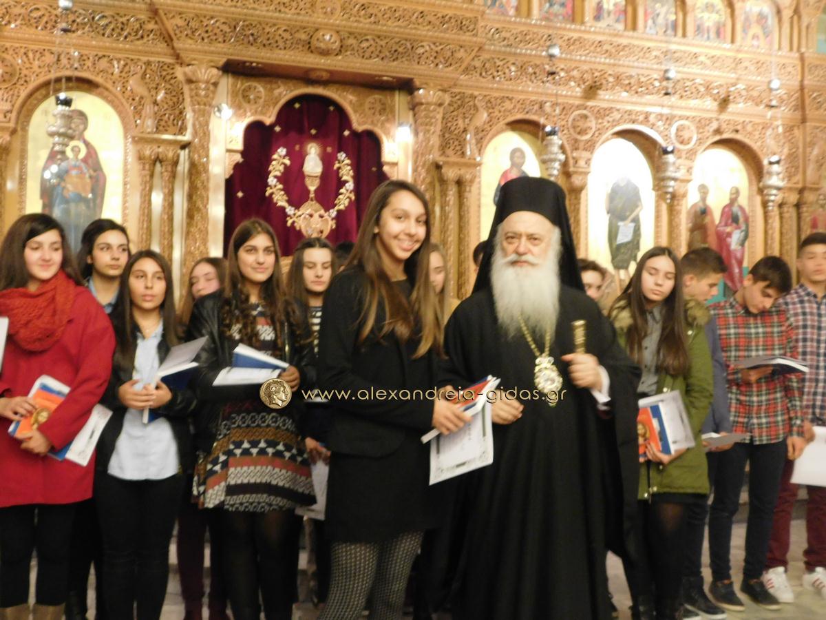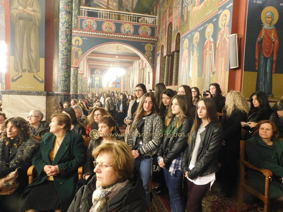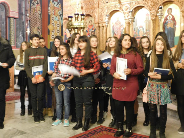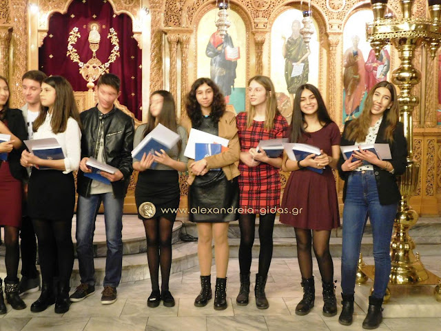 Πραγματοποιήθηκε το απόγευμα της Παρασκευής 29 Ιανουαρίου ο Μέγας Αρχιερατικός Εσπερινός της εορτής των Αγίων Τριών Ιεραρχών στον Ιερό Μητροπολιτικό Ναό Κοιμήσεως της Θεοτόκου Αλεξάνδρειας και στη συνέχεια η τελετή βράβευσης των αριστούχων μαθητών Γυμνασίων Αλεξάνδρειας.