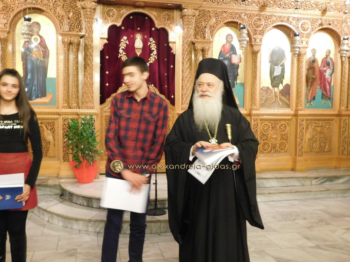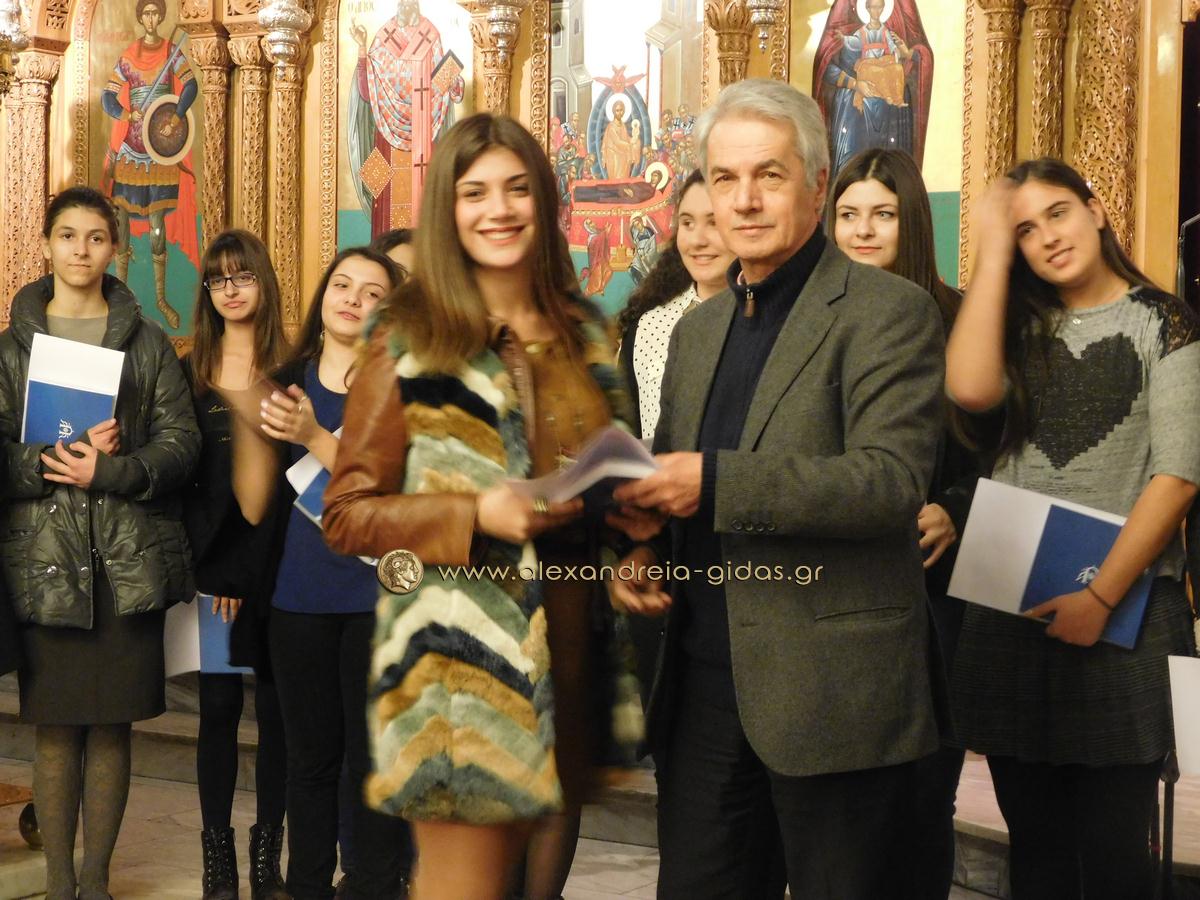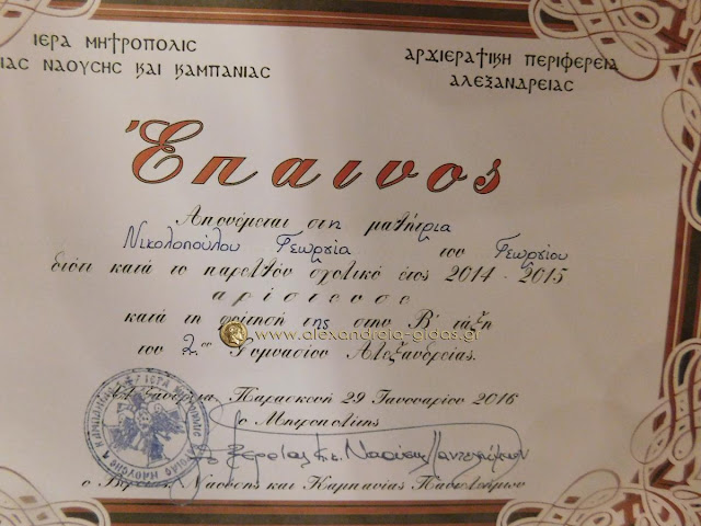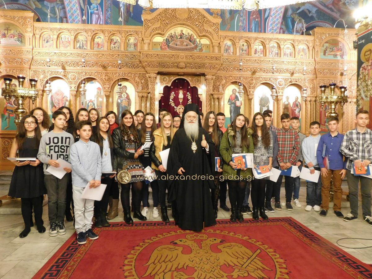 Πραγματοποιήθηκε το απόγευμα της Παρασκευής 29 Ιανουαρίου ο Μέγας Αρχιερατικός Εσπερινός της εορτής των Αγίων Τριών Ιεραρχών στον Ιερό Μητροπολιτικό Ναό Κοιμήσεως της Θεοτόκου Αλεξάνδρειας και στη συνέχεια η τελετή βράβευσης των αριστούχων μαθητών Γυμνασίων Αλεξάνδρειας.